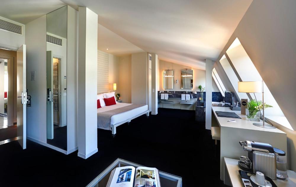 Situé en face du musée Guggenheim de Bilbao, l’hôtel Miró est l’œuvre du créateur de mode Antonio Miró. Tout et particulierement l‘accueil des enfants, il y avait meme une baignoire de prévu!! Voir plus Voir moins
